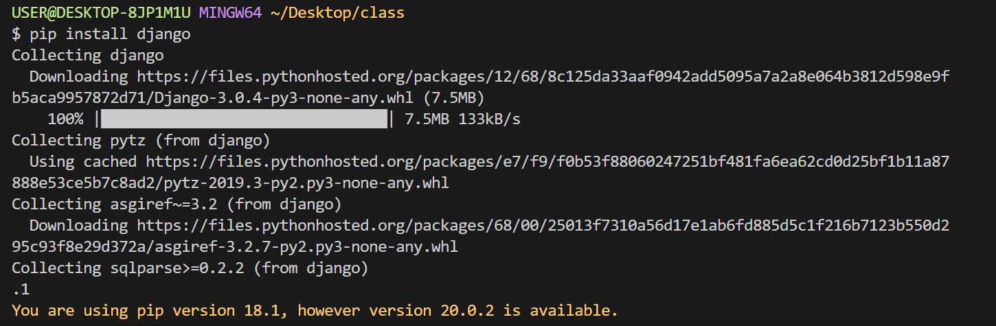 install은 설치하라는 의미로, django를 설치하라는 의미이죠.